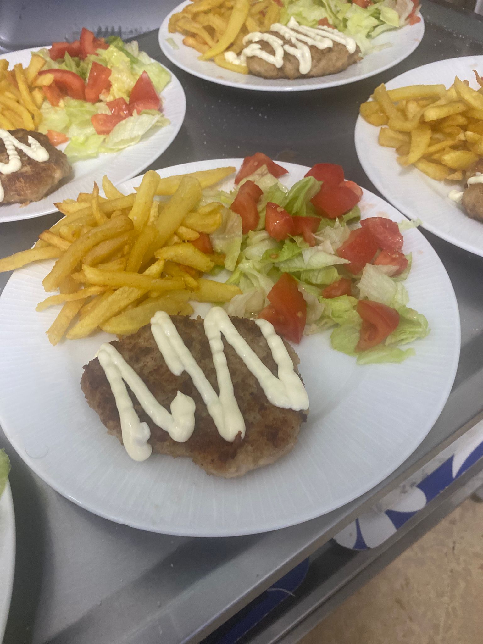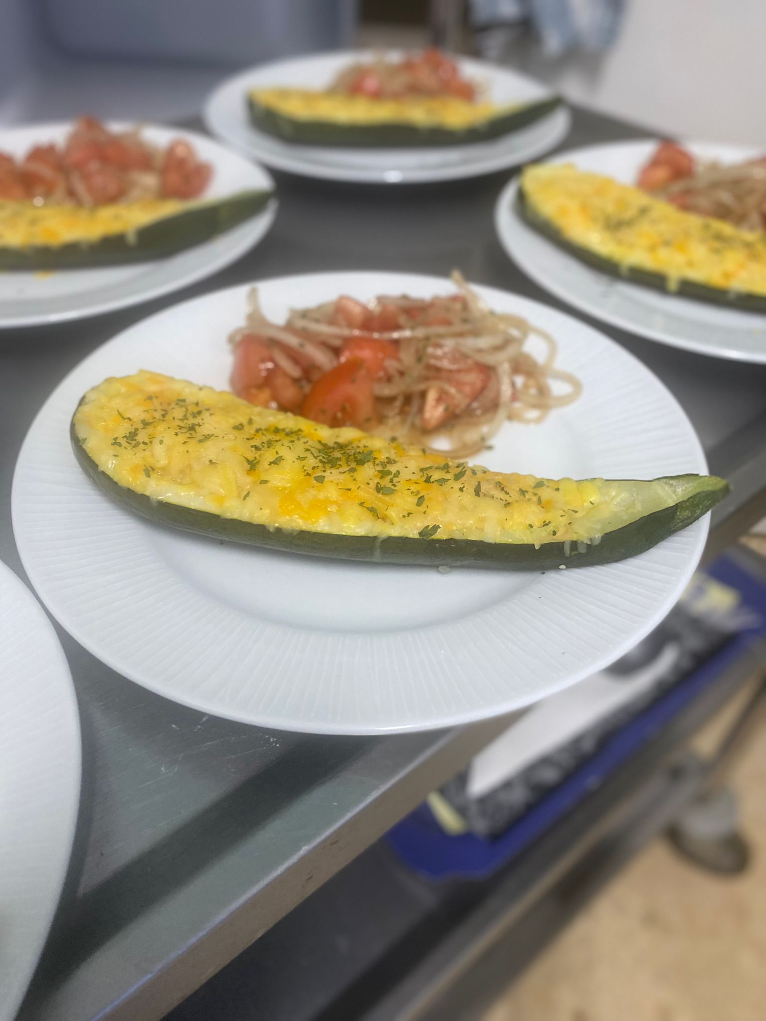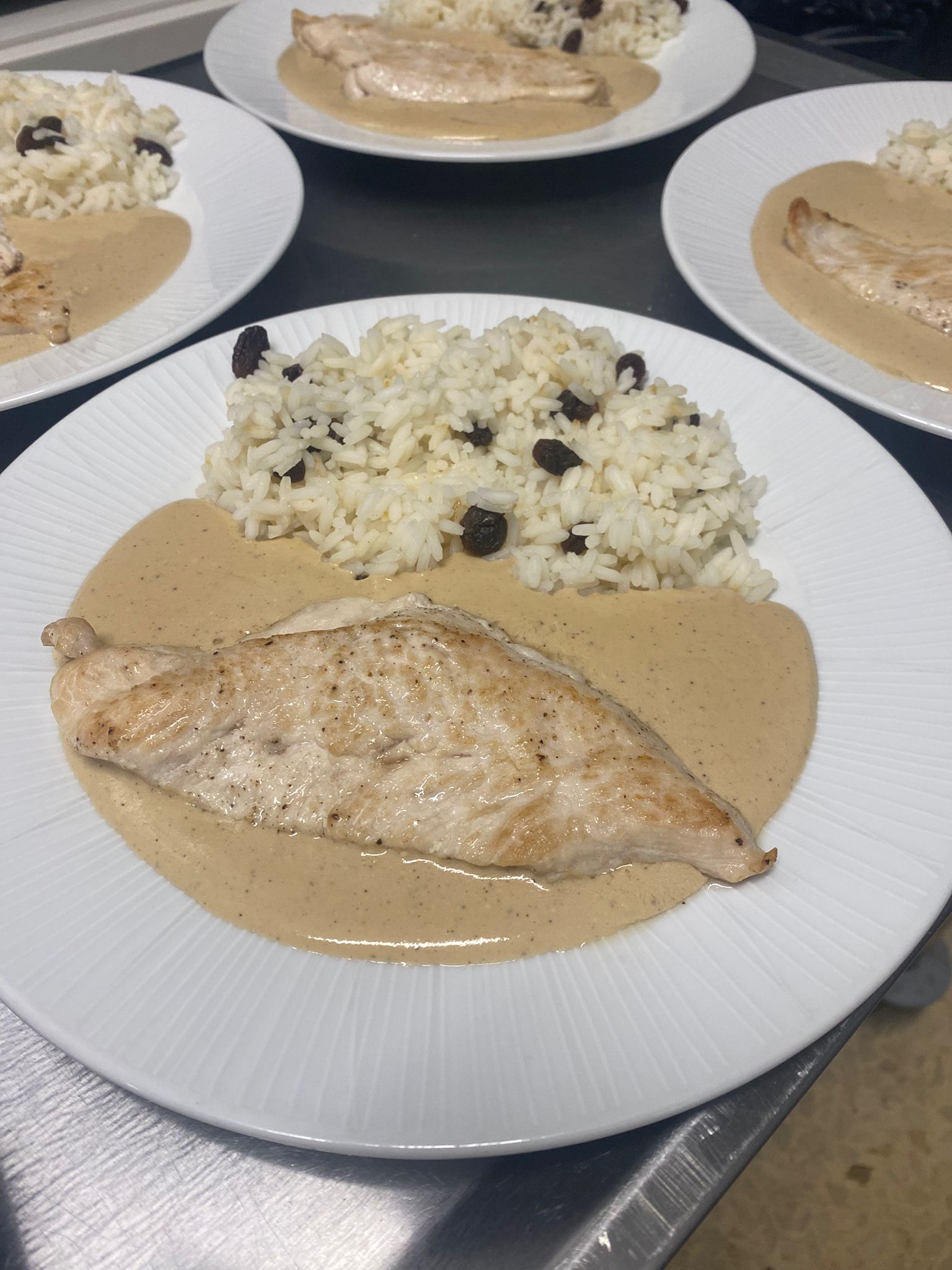 CasaKlein Cuisine CasaKlein Cuisine El plato de esta noche redondo de ternera rellena al horno con salsa Pedro ximenez y patatas caramelizadashamburguesa de pollo con patatas fritas y mayonesa con ensalada mixtaEl plato de esta noche pollo al Curri con arroz blancoEl plato de esta noche pastel de carne con salsa de pimienta y patata cocida con guisantesEl plato de esta noche filete de pavo a la plancha con salsa de pimienta y naranja y arroz blanco con pasasEl plato de ayer filete de pavo con salsa pimienta y verduras al vaporCroquetas con salsa holandesa y patata cocidacrepes rellenos de jamón y queso con salsa de queso y ensalada de tomate cebolla y pepino.calabacín relleno de arroz y pollo gratinados con ensalada de tomate cebolla y perejil