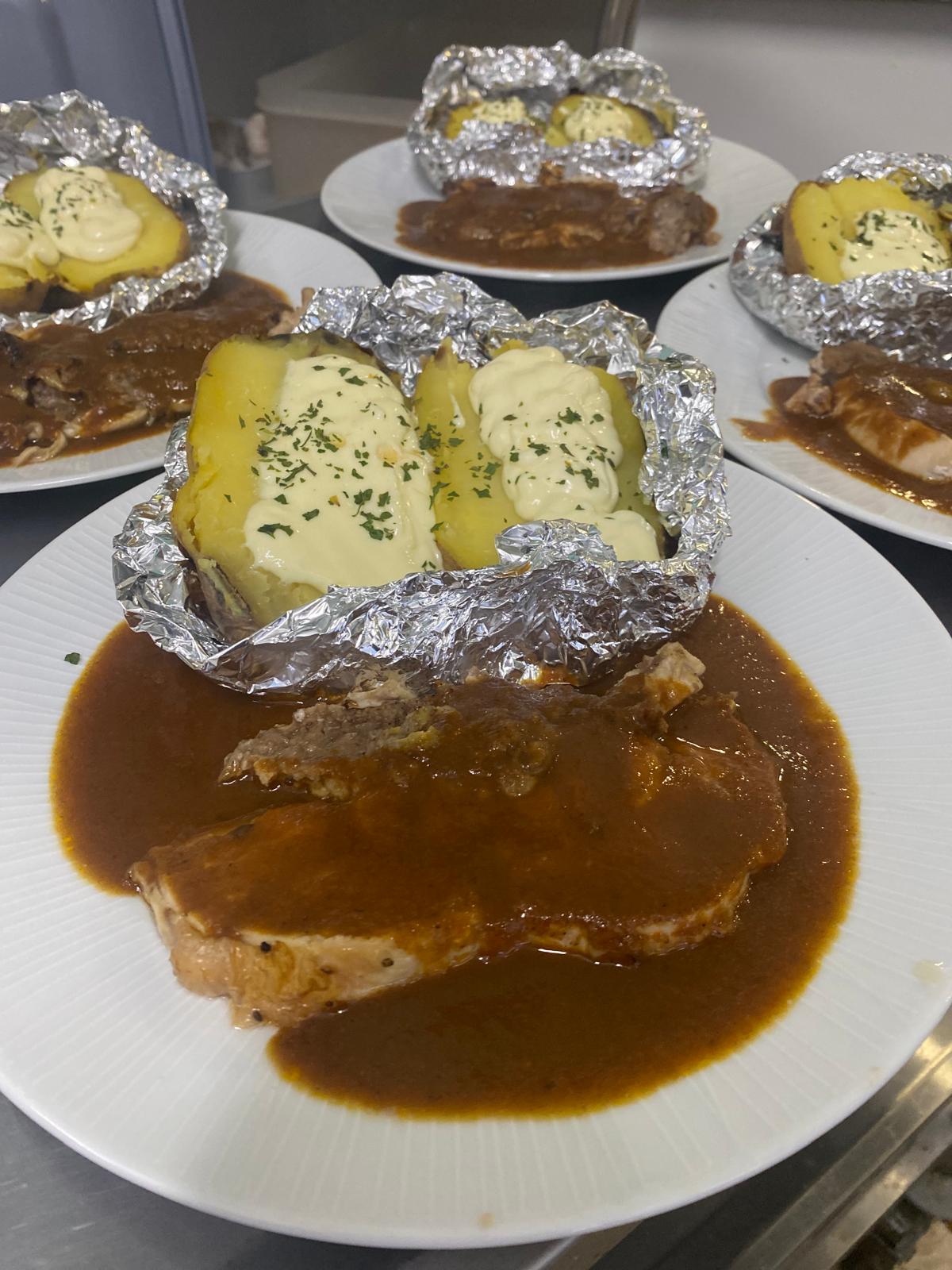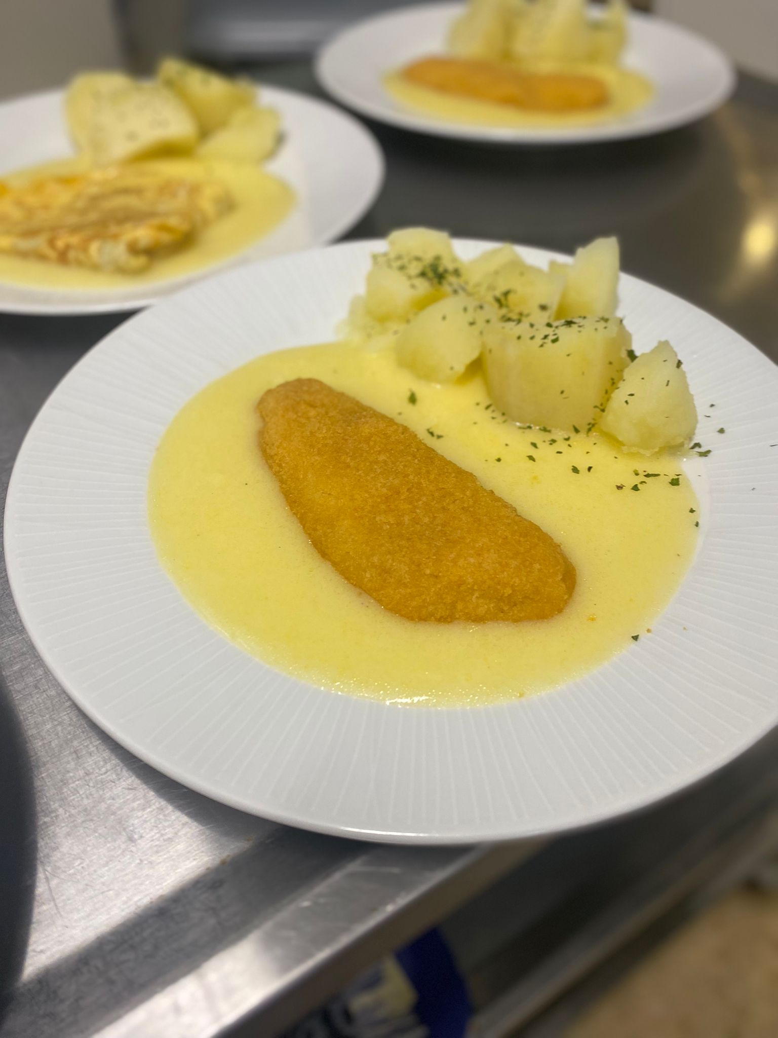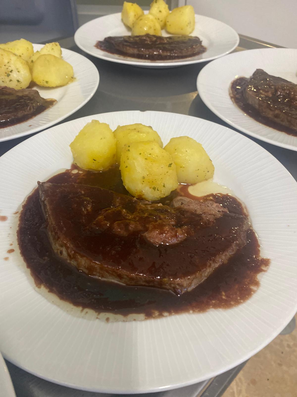 CasaKlein Cuisine CasaKlein Cuisine El plato de esta noche redondo de ternera rellena al horno con salsa Pedro ximenez y patatas caramelizadashamburguesa de pollo con patatas fritas y mayonesa con ensalada mixtaEl plato de esta noche pollo al Curri con arroz blancoEl plato de esta noche pastel de carne con salsa de pimienta y patata cocida con guisantesEl plato de esta noche filete de pavo a la plancha con salsa de pimienta y naranja y arroz blanco con pasasEl plato de ayer filete de pavo con salsa pimienta y verduras al vaporCroquetas con salsa holandesa y patata cocidacrepes rellenos de jamón y queso con salsa de queso y ensalada de tomate cebolla y pepino.calabacín relleno de arroz y pollo gratinados con ensalada de tomate cebolla y perejil